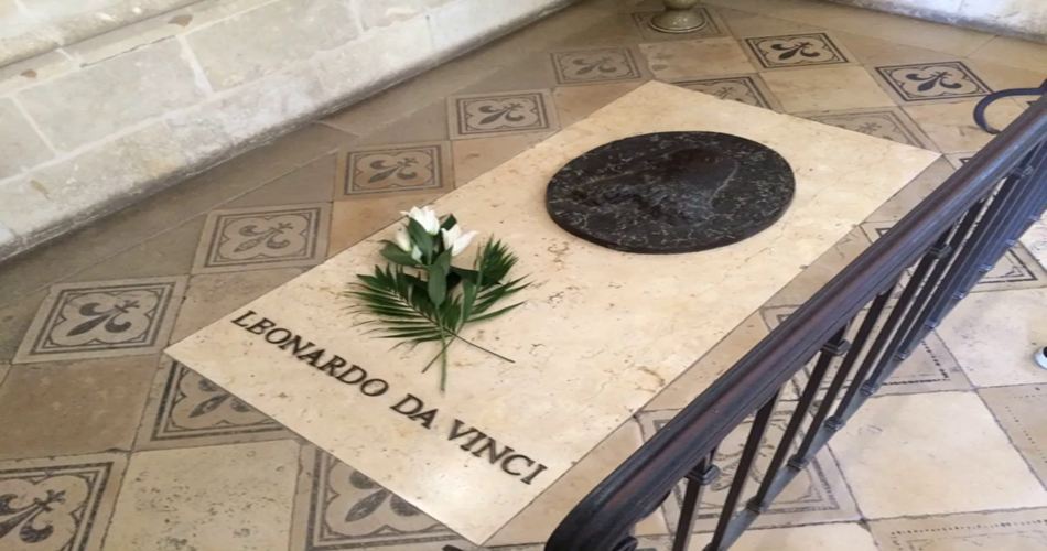 لئوناردو در کلیسای سنت فلورانتن در قلعه آمبواز دفن شد، اما این کلیسا در طول انقلاب فرانسه تخریب شد و بقایای او پراکنده شدند. امروزه بقایای ادعا شده او در کلیسای سنت-هوبرت در همان قلعه بازدفن شدهاند، هرچند که لوح یادبود تنها آن را «محل فرضی» میداند.
